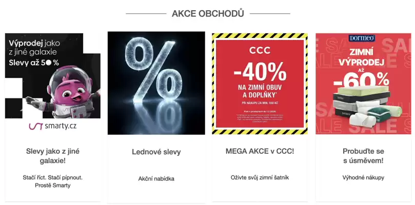Pokud nemůžete najít obchod nebo nabídku, kterou hledáte pod Výprodej, může být váš oblíbený obchod nebo nabídka umístěna v jiné kategorii. Můžete zadat název obchodu do vyhledávacího pole. Pořád nic? Pak může být možné, že pro váš oblíbený obchod nebo nabídku nebyly nalezeny žádné akce nebo nabídky.