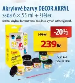SEVT Akrylové barvy DECOR AKRYL nabídkaAkrylové barvy DECOR AKRYLSEVT299,00 Kč239,00 Kč60,00 Kč Slevu27 října 202331 prosince 2023