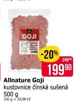 | Allnature Goji kustovnice čínská sušená 500 g | Teta | 199,90 Kč | 11 září 2025 | 23 září 2025 | |||