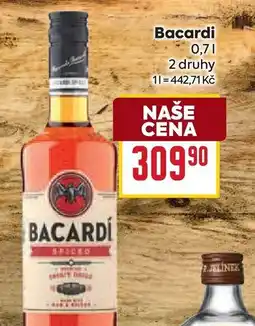 | Bacardi Carta Blanca 37,5% Carta Oro 37,5% Carta Negra 37,5 % Spiced 35% Razz 27% 1L | Jip | 429,00 Kč | 18 března 2026 | 24 března 2026 | |||