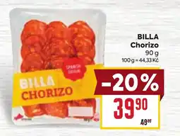 | 1 | BILLA Chorizo 90 g | Billa | 49,90 Kč | 39,90 Kč | -20% | 14 ledna 2026 | 20 ledna 2026 | Zobrazit nabídku | |