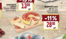 | Madeta Blaťácké zlato 48 % t. v s. 100 g | Globus | 30,90 Kč | 25,90 Kč | -16% | 21 ledna 2026 | 27 ledna 2026 | |