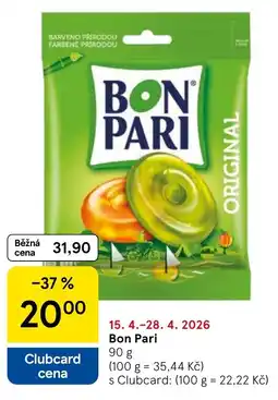 | 8 | Bon Pari bonbony 90g, vybrané druhy 90 g | Tesco | 31,90 Kč | 15 dubna 2026 | 21 dubna 2026 | Zobrazit nabídku | |||