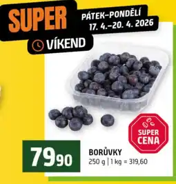 | 1 | Borůvky 250 g | Terno | 79,90 Kč | 15 dubna 2026 | 21 dubna 2026 | Zobrazit nabídku | |||