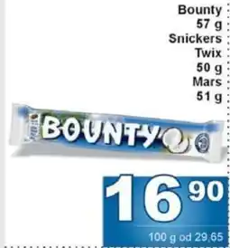 | Bounty Mléčná čokoláda plněná kokosem 57g | Hruška | 16,90 Kč | 07 ledna 2026 | 13 ledna 2026 | |||