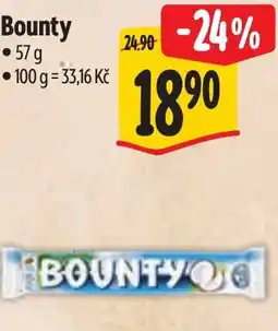 | Bounty Hořká čokoláda plněná kokosem 57g 57 g | Albert | 18,90 Kč | -24% | 14 ledna 2026 | 20 ledna 2026 | ||