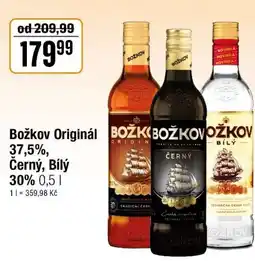 | Božkov Originál 37,5%, Černý, Bílý 30% 0.5 L | TEMPO | 209,99 Kč | 179,99 Kč | 30,00 Kč Slevu | 22 dubna 2026 | 05 května 2026 | |