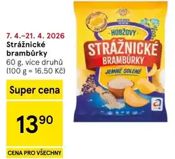 | 1 | Strážnické brambůrky 60 g | Tesco | 13,90 Kč | 15 dubna 2026 | 21 dubna 2026 | Zobrazit nabídku | |||