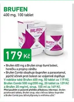 | Brufen 400 mg 100 tbl. | Dr. Max | 219,00 Kč | 149,00 Kč | 70,00 Kč Slevu | 01 listopadu 2025 | 30 listopadu 2025 | |