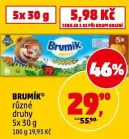 | 1 | Brumík 5 x 30 g | Penny Market | 55,90 Kč | 29,90 Kč | 26,00 Kč Slevu | 25 února 2026 | 03 března 2026 | Zobrazit nabídku | |
