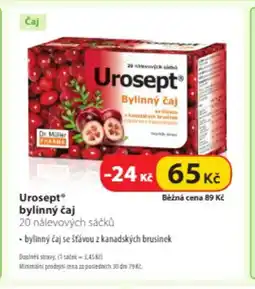| Urosept bylinný čaj | Dr. Max | 89,00 Kč | 65,00 Kč | 24,00 Kč Slevu | 01 ledna 2024 | 31 ledna 2024 | |