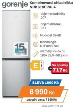 | Gorenje Kombinovaná chladnička NRK619DA2XL4 | Expert | 12 990,00 Kč | 11 490,00 Kč | 1 500,00 Kč Slevu | 24 listopadu 2025 | 30 listopadu 2025 | |