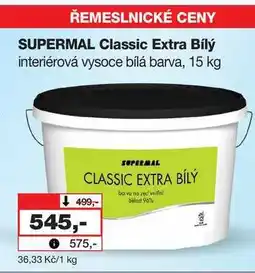 | SUPERMAL Classic Extra Bílý 15 kg | Barvy a laky drogerie | 499,00 Kč | 28 února 2026 | 20 března 2026 | |||