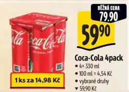 | Coca-Cola 4 x 330ml, vybrané druhy 1320ml | Albert | 59,90 Kč | -25% | 14 ledna 2026 | 20 ledna 2026 | ||