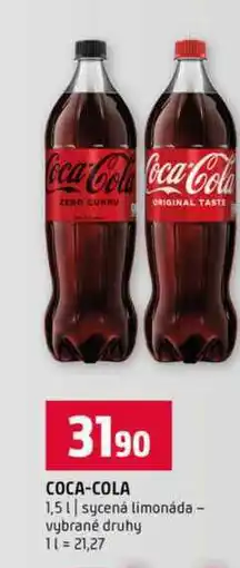 | COCA-COLA 1,5l sycená limonáda vybrané druhy 1.5L | Terno | 31,90 Kč | 21 ledna 2026 | 27 ledna 2026 | |||