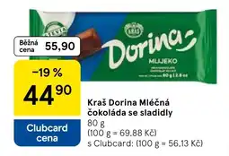 | Kraš Dorina Mléčná čokoláda se sladidly 80 g | Tesco | 55,90 Kč | 44,90 Kč | -19% | 14 ledna 2026 | 20 ledna 2026 | |