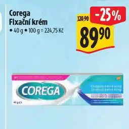 | Corega fixační krém | Albert | 124,90 Kč | 89,90 Kč | 35,00 Kč Slevu | 11 ledna 2023 | 17 ledna 2023 | |