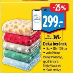 | Deka beránek | Albert | 399,00 Kč | 349,00 Kč | 50,00 Kč Slevu | 06 listopadu 2024 | 12 listopadu 2024 | |