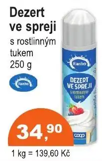 | Ranko Dezert ve spreji 250 g | COOP DISKONT | 34,90 Kč | 17 prosince 2025 | 31 prosince 2025 | |||