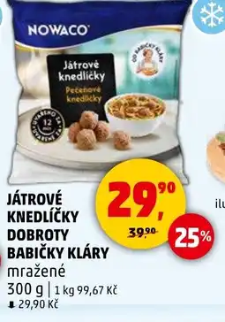 | NOWACO Játrové knedlíčky dobroty babičky kláry 300 g | Penny Market | 42,90 Kč | 29,90 Kč | 30% | 04 prosince 2025 | 10 prosince 2025 | |