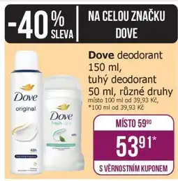 | Dove deodorant | Teta | 89,90 Kč | 49,90 Kč | 40,00 Kč Slevu | 12 května 2022 | 23 května 2022 | |
