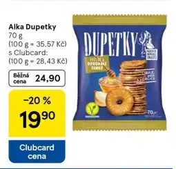 | Alka Dupetky solené 80g | Tesco | 24,90 Kč | 03 září 2025 | 09 září 2025 | |||