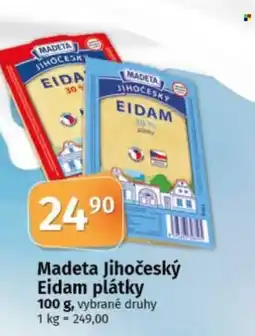 | Madeta Jihočeský Eidam 44% t. v s./45% t. v s. 100 g | COOP TIP | | 16,90 Kč | | 03 prosince 2025 | 16 prosince 2025 |