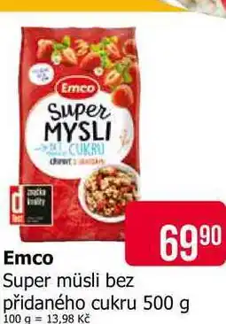 | EMCO Super müsli bez přidaného cukru 500 g | Teta | 119,90 Kč | 79,90 Kč | 40,00 Kč Slevu | 18 ledna 2024 | 30 ledna 2024 | |