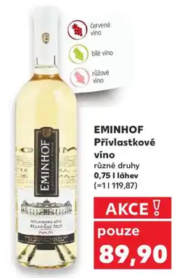 | EMINHOF Přívlastkové víno 0.75 L | Kaufland | 149,90 Kč | 89,90 Kč | -40% | 10 prosince 2025 | 16 prosince 2025 | |