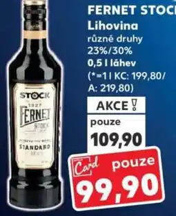 | FERNET STOCK Lihovina 0.5 L | Kaufland | 189,90 Kč | 104,90 Kč | Card -44% | 24 září 2025 | 30 září 2025 | |