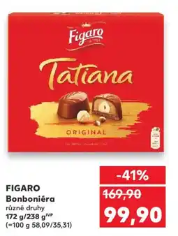 | FIGARO TATIANA Bonboniéra originál 172 g-238 g | Kaufland | 199,90 Kč | 79,90 Kč | -60% | 05 února 2025 | 11 února 2025 | |