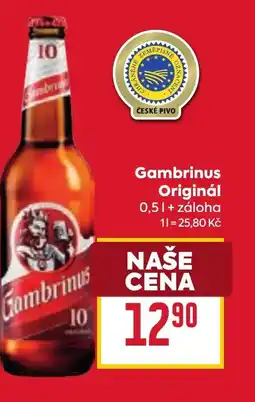 | Gambrinus Originál 10 pivo 0.5 L | COOP DISKONT | 12,90 Kč | 02 ledna 2026 | 13 ledna 2026 | |||