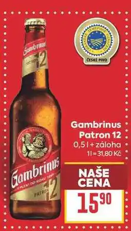 | Pivo gambrinus patron 12 | Billa | 15,90 Kč | 22 května 2024 | 28 května 2024 | |||