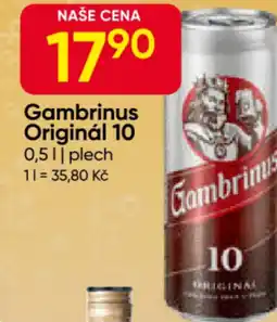 Gambrinus Originál 10 pivo výčepní světlé 0,5l plech 500ml