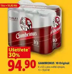 | GAMBRINUS 10 ORIGINÁL 0.5L | Lidl | 15,90 Kč | 11,90 Kč | 4,00 Kč Slevu | 19 května 2024 | 26 května 2024 | |