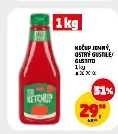 | Kečup gustito | Penny Market | 43,90 Kč | 26,90 Kč | Sleva 39% | 22 ledna 2026 | 28 ledna 2026 | |