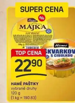 | HAMÉ Paštiky 120 g | Flop | 29,90 Kč | 09 října 2024 | 15 října 2024 | |||