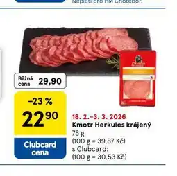 | Kmotr Herkules krájený 75 g | Tesco | 29,90 Kč | 18 února 2026 | 24 února 2026 | |||