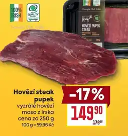 | Hovězí steak pupek vyzrálé hovězí maso z Irska cena za 250 g | Billa | 149,90 Kč | 02 července 2025 | 29 července 2025 | |||