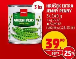 | Hrášek penny jemný, velmi jemný 280 g | Penny Market | 22,90 Kč | 16,90 Kč | 26% | 09 října 2025 | 15 října 2025 | |