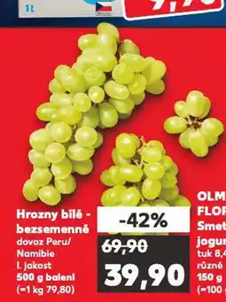 | 1 | Hrozny bílé bezsemenné | Kaufland | 69,90 Kč | 39,90 Kč | 30,00 Kč Slevu | 07 ledna 2026 | 13 ledna 2026 | Zobrazit nabídku | |