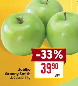 | Jablko Granny Smith skládané 1 kg | Billa | 59,55 Kč | 39,90 Kč | -33% | 11 února 2026 | 03 března 2026 | |