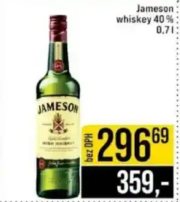 | Jameson whiskey 40% 0.7 l | TEMPO | 429,99 Kč | 359,99 Kč | 70,00 Kč Slevu | 17 prosince 2025 | 31 prosince 2025 | |