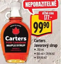 | Carters Javorový sirup 250 ml | Albert | 177,00 Kč | 109,90 Kč | -37% | 07 ledna 2026 | 13 ledna 2026 | |