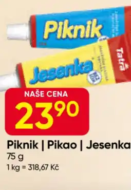 | Tatra Piknik, Pikao, Jesenka 75g 75 g | Flop | 21,90 Kč | 04 února 2026 | 10 února 2026 | |||