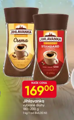 | Jihlavanka Standard 150g, pražená mletá káva, vybrané druhy 150 g | Penny Market | 108,91 Kč | 59,90 Kč | -45% | 22 ledna 2026 | 28 ledna 2026 | |