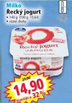 | Milko Řecký jogurt 140 g | Norma | 19,90 Kč | 14,90 Kč | levnější o 25% | 27 ledna 2025 | 02 února 2025 | |