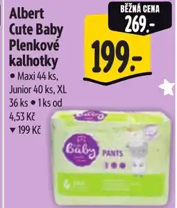 | Albert Plenkové kalhotky Cute Baby maxi 44 ks, junior 40 ks, XL 36 ks | Albert | 199,00 Kč | 09 července 2025 | 15 července 2025 | |||