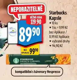 | 1 | Starbucks Kapsle | Albert | 119,90 Kč | 89,90 Kč | 30,00 Kč Slevu | 14 ledna 2026 | 20 ledna 2026 | Zobrazit nabídku | |