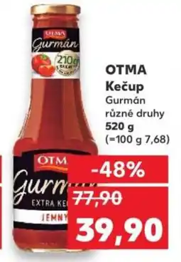 | 1 | OTMA Kečup 520 g | Kaufland | 77,90 Kč | 39,90 Kč | -48% | 27 prosince 2025 | 31 prosince 2025 | Zobrazit nabídku | |